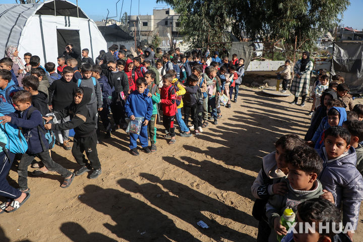 [자발리아=신화/뉴시스] 미국이 가자지구 평화계획 2단계 시행을 선언하고 가자지구를 운영할 팔레스타인 괸료 명단을 이르면 14일(현지 시간) 발표할 에정이라고 월스트리트저널(WSJ), 뉴욕타임스(NYT) 등이 13일(현지 시간) 보도했다. 사진은 지난 12일 가자지구 자발리아 난민캠프에 있는 알샤말 학교에 아이들이 등교하는 모습. 2026.01.14. |