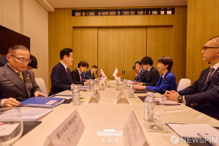 [서울=뉴스핌] 이재명 대통령이 지난 13일 일본 나라현에서 다카이치 총리와 소인수회담을 하고 있다. [사진=청와대] 2026.01.14 photo@newspim.com