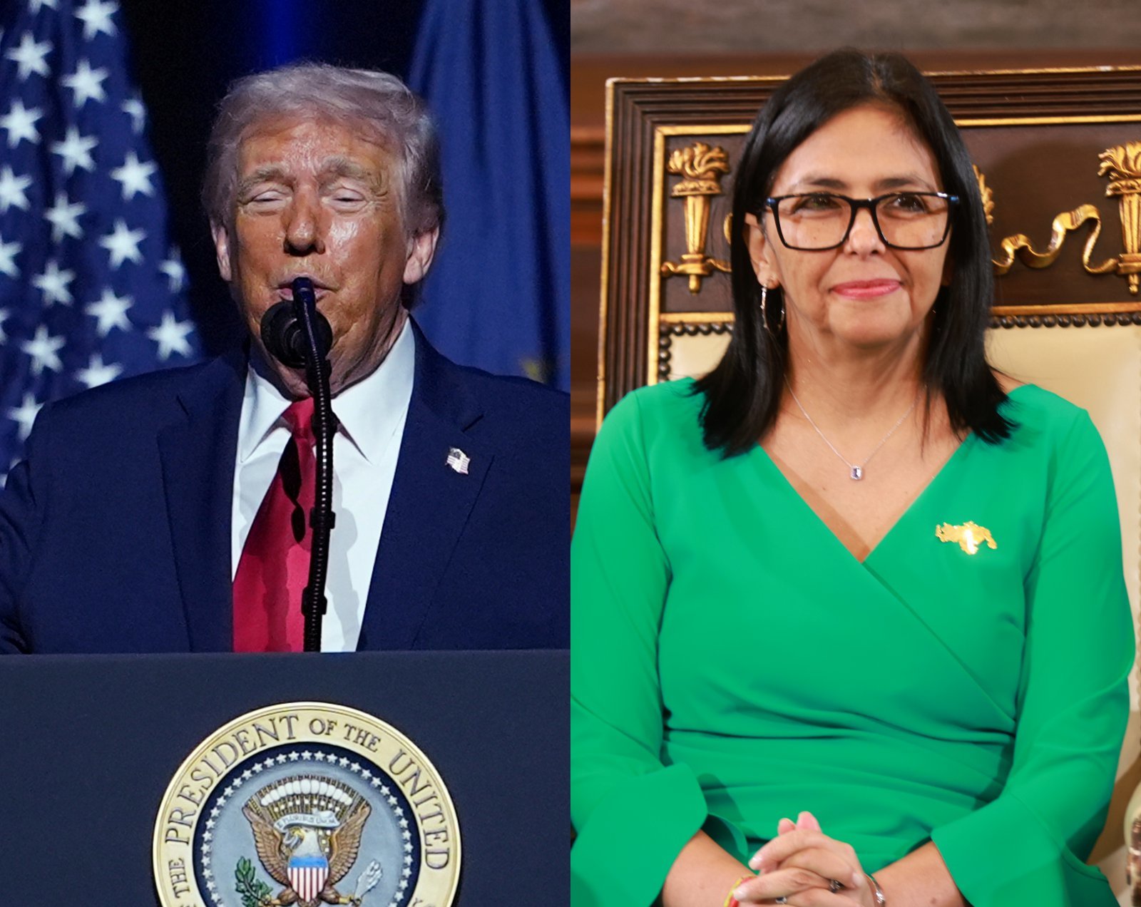 도널드 트럼프 미국 대통령(왼쪽)·델시 로드리게스 베네수엘라 임시 대통령. 뉴시스 |