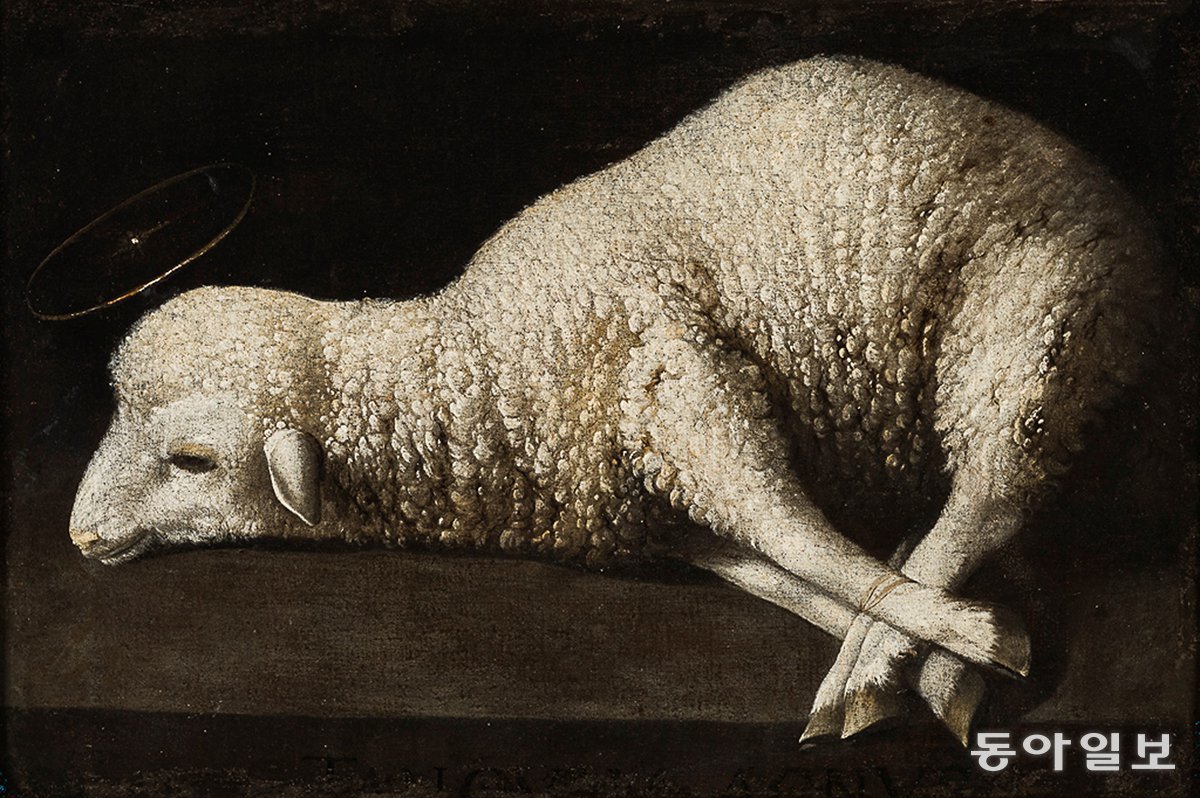 이번 전시에 출품된 샌디에이고 미술관 소장본은 그 중에서도 특히 종교적 색채가 짙은 작품으로 꼽힌다. 그림 속 선반에는 ‘양처럼’을 뜻하는 라틴어 글귀(TANQUAM AGNUS)가 작게 새겨졌고, 양의 머리엔 은은한 후광이 그려져 있다.