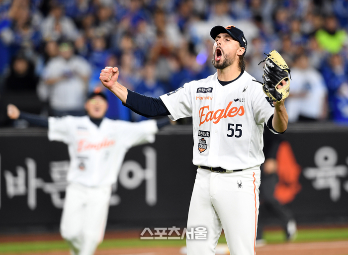한화 와이스가 24일 대전 한화생 명볼파크에서 열린 2025 KBO리그 삼성과 플레이오프 5차전에서 4이닝 1실점 세이브를 기록하며 승리를 지켜낸 뒤 포효하고 있다. 대전 | 박진업 기자 upandup@sportsseoul.com |