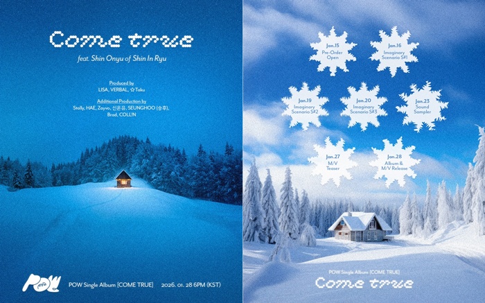 파우는 1월초 공개한 모션 티저를 통해 “드림스 컴 트루 인 2026. 파우 커밍 디스 재뉴어리(Dreams come true in 2026. POW coming this January)”라는 메시지로 1월 컴백을 예고한 바 있다. 지난 한 해 동안 ‘1년 4컴백’이라는 이례적인 행보를 이어가며 음악 활동은 물론 공연, 자체 콘텐츠, 기부 활동까지 폭넓은 영역에서 존재감을 각인시킨 파우가 이번 컴백을 통해 또 어떤 도약을 보여줄지 관심이 집중된다.