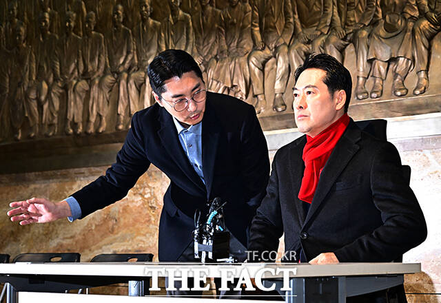 [더팩트ㅣ국회=배정한 기자] 장동혁 국민의힘 대표가 15일 오후 서울 여의도 국회 로텐더홀에서 단식농성을 시작하고 있다.