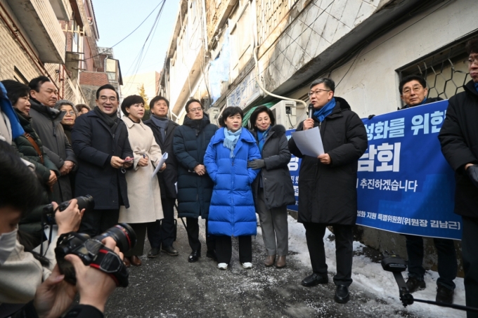 15일 김남근 민주당 서울시당 재개발·재건축 특위(주거환경개선을 위한 재개발·재건축 활성화 지원 특별위원회) 위원장에 따르면 김 의원 등은 지난 14일 서울 성북구 장위뉴타운 일대 재개발 현장을 찾아 "민간·공공 재개발 신속 추진을 담보할 도시 및 주거환경정비법 개정안을 신속히 처리하겠다"고 했다.