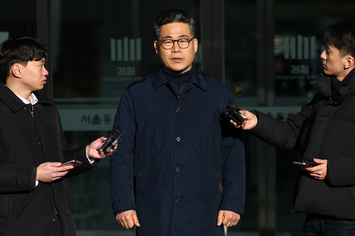 서울동부지검에 파견돼 3개월간 ‘세관 마약수사 은폐 의혹’을 수사한 백해룡 경정이 14일 서울동부지검 앞에서 파견 종료 관련 소회를 밝히고 있다. 연합뉴스 |