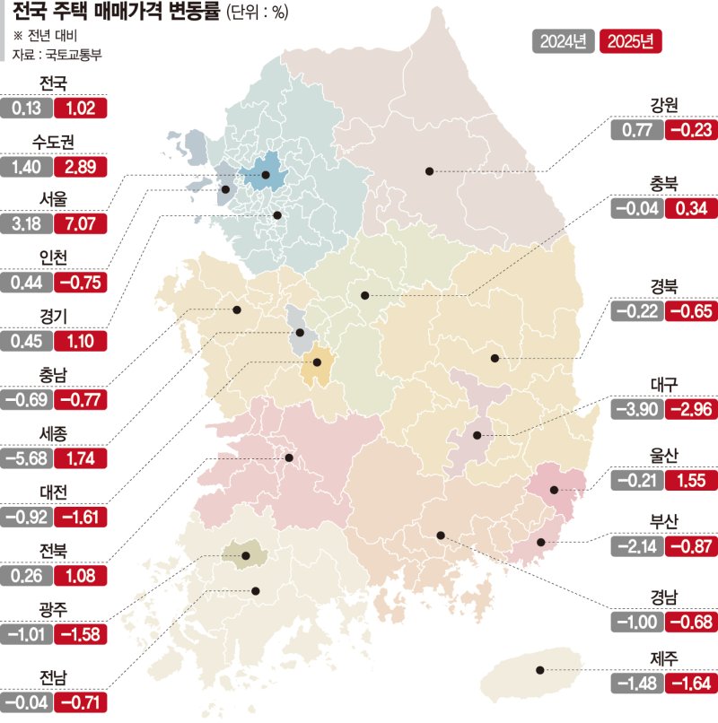 서울 7.07% 올라 전국 평균의 7배…대구는 3% 내려
