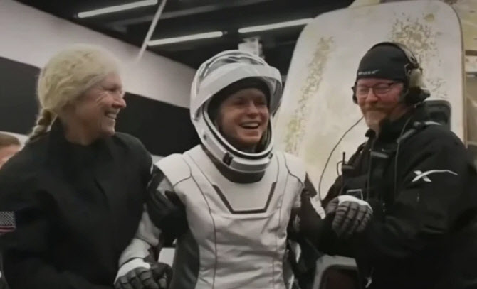 드래곤 엔데버호에 탑승했던 4명의 우주비행사가 15일(현지시간) 미국 캘리포니아 해안에 착수한 후 우주선에서 나오고 있다. (사진=NASA, BBC) |