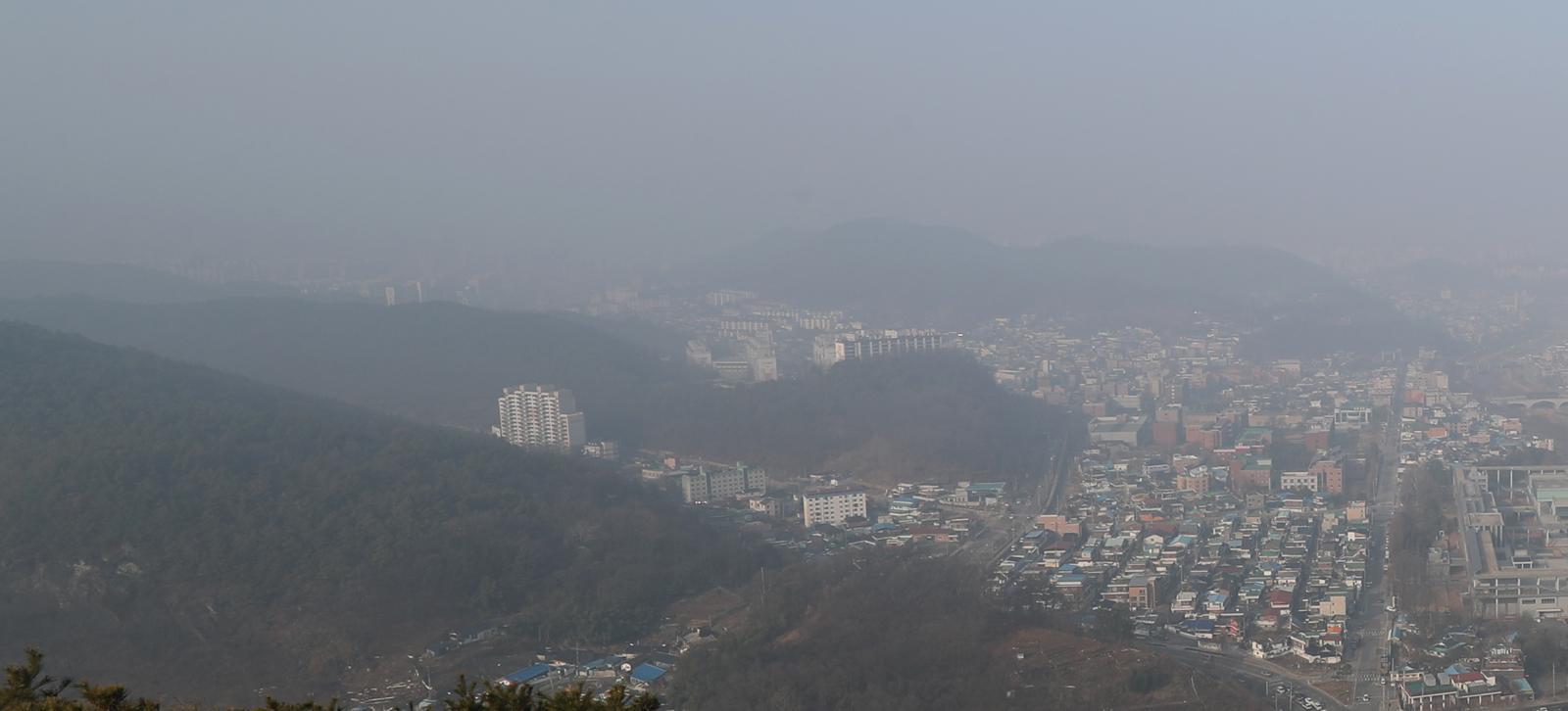 전북특별자치도 전역에 미세먼지 주의보가 발령된 25일 전북자치도 전주시 치명자산에서 바라본 도심이 미세먼지로 뒤덮여 있다. 2025.3.25/뉴스1 |