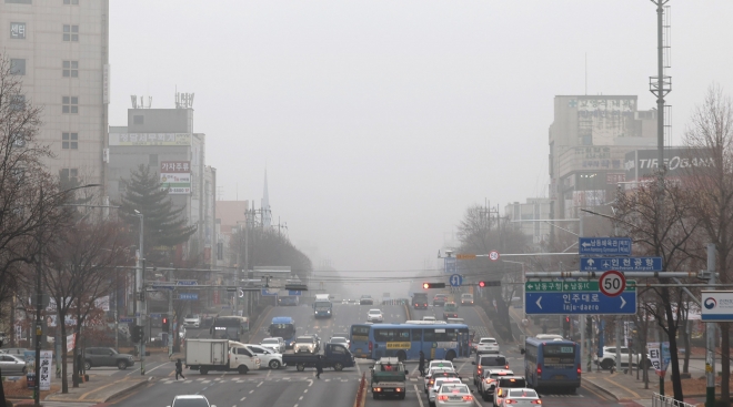 기상청에 따르면 이날 강원 영동을 제외한 전국의 미세먼지 농도는 ‘나쁨’ 수준을 보이겠다. 충북은 오전까지, 대전·세종·광주·전북은 오전 중 한때 ‘매우 나쁨’ 수준까지 오를 전망이다. 전날 국외에서 유입된 미세먼지와 국내 발생 오염물질이 대기 정체로 빠져나가지 못하면서 농도가 높아진 것으로 분석된다.