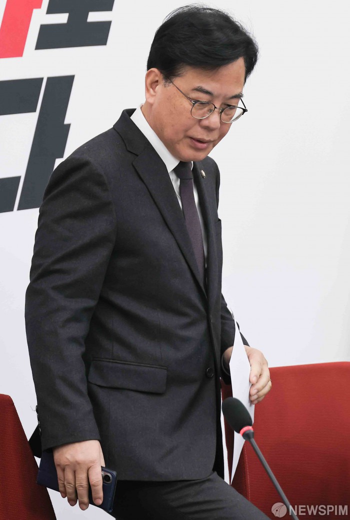 [서울=뉴스핌] 윤창빈 기자 = 송언석 국민의힘 원내대표가 16일 서울 여의도 국회에서 열린 현안 관련 기자간담회에 참석하고 있다. 2026.01.16 pangbin@newspim.com
