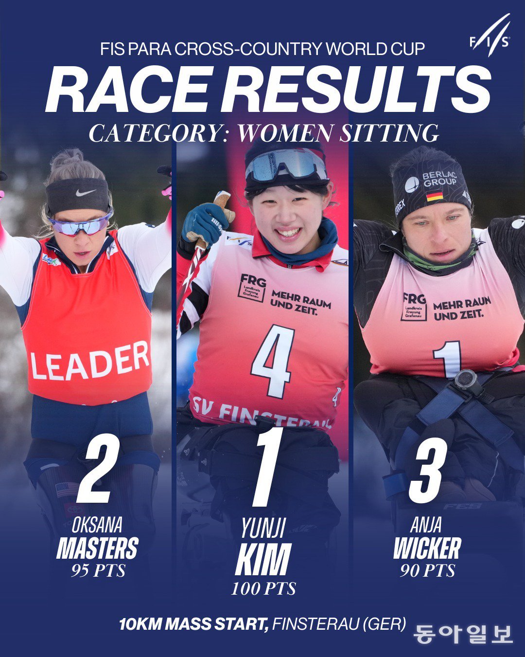 김윤지는 15일(현지 시간) 독일 핀슈테라우에서 열린 대회 여자 10km 매스스타트 좌식 프리 경주에서 31분47초70에 결승선을 통과했다.