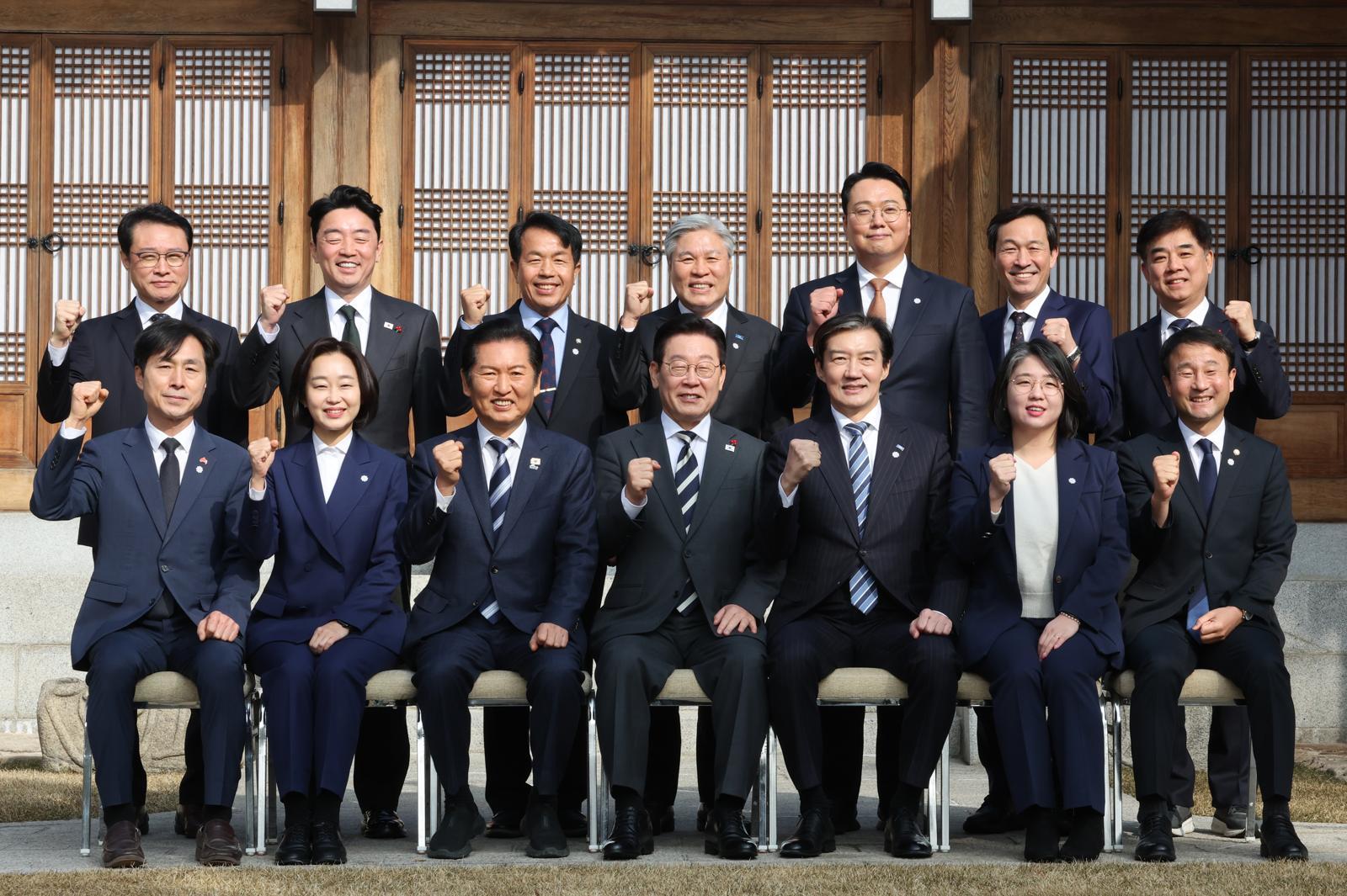 이 대통령과 여야지도부는 “대한민국 파이팅”을 외치며 기념촬영을 진행했고 곧이어 비공개 오찬에 들어갔다.