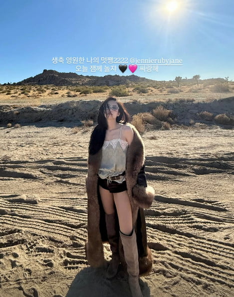 공개된 사진들 속에는 제니가 촬영에 한창인지 사막에서 퍼 자켓을 착용하고 있는 모습. 특히 지수는 "오늘 잼께 놀쟈 싸랑해"라며 따로 만남을 예고하는 듯한 메시지를 남겨 눈길을 끌었다.