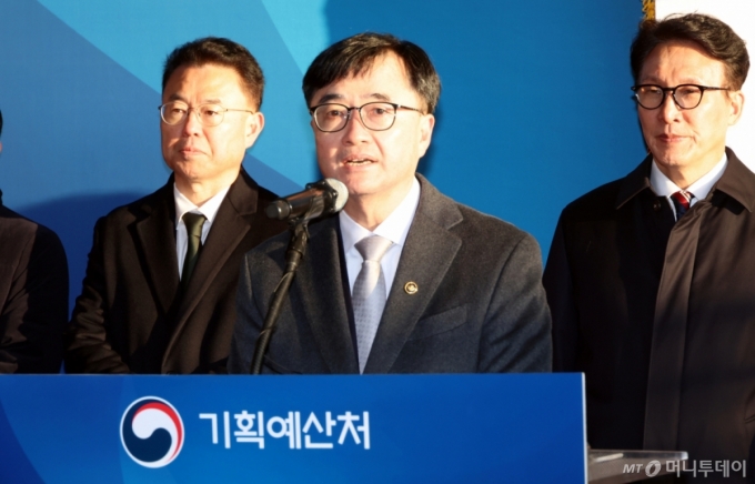 [세종=뉴시스] 강종민 기자 = 임기근 기획예산처 차관이 2일 세종시 정부세종청사에서 열린 기획처 현판제막시에서 출범사를 하고 있다. 2026.01.02. ppkjm@newsis.com /사진=강종민 |