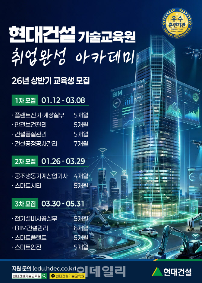 교육 수료자는 현대건설을 비롯해 동종 건설사 및 협력사로의 취업 연계를 지원받는다.