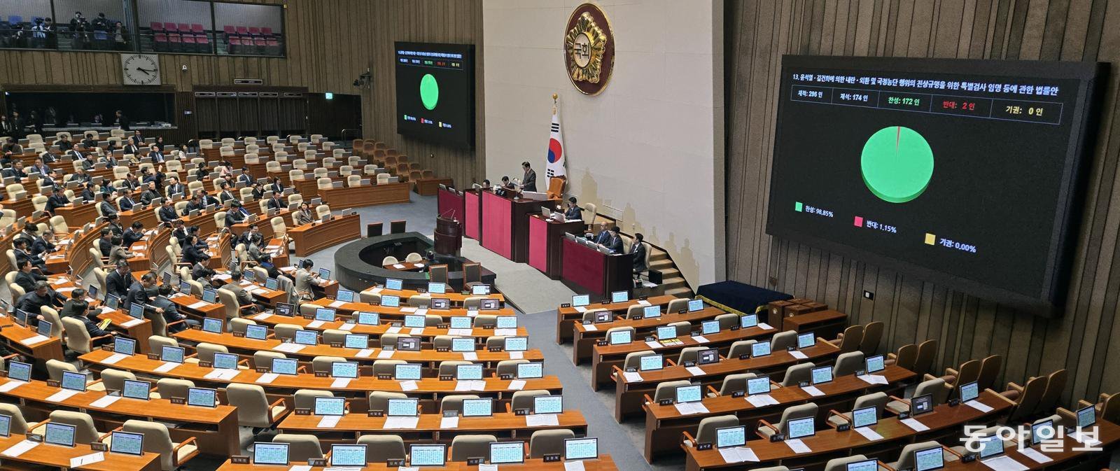 국회는 이날 본회의를 열어 2차 종합특검법을 찬성 172명, 반대 2명으로 통과시켰다. 개혁신당 천하람 원내대표가 전날 오후부터 18시간 56분 간 필리버스터(무제한 토론)을 진행하는 등 보수 야당은 필리버스터로 맞섰지만 민주당 등 범여권은 24시간이 지난 뒤 필리버스터를 강제 종결시킨 뒤 특검법을 처리했다. 국민의힘은 표결에 불참했다.