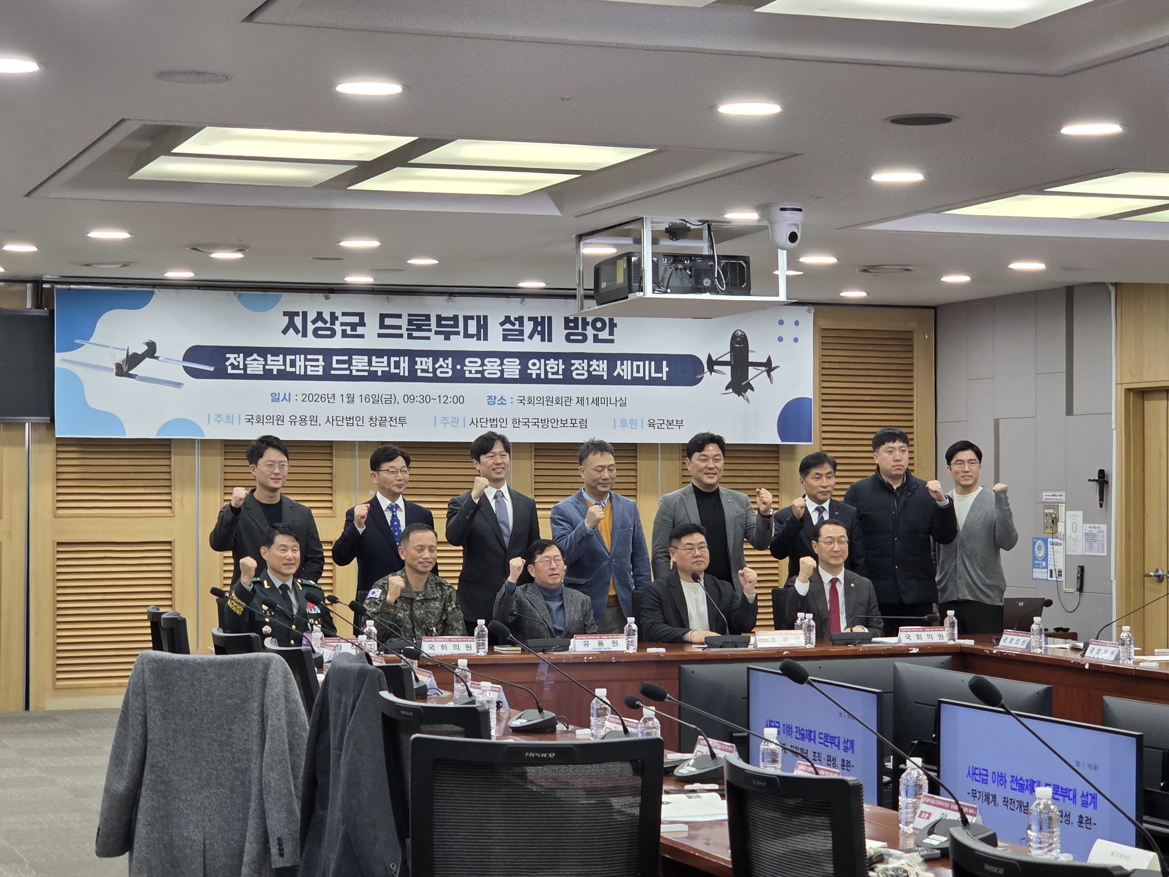 국회 국방위원회 소속 유용원 의원(국민의힘)과 사단법인 창끝전투는 16일 오전 국회의사당 국회의원회관 제1세미나실에서 '전술부대급 드론부대 편성·운용을 위한 정책 세미나'를 공동 개최했다. 군 관계자와 산·학·연 전문가가 이에 대한 문제점과 해결책을 논의하며 열띤 토론을 벌였다.