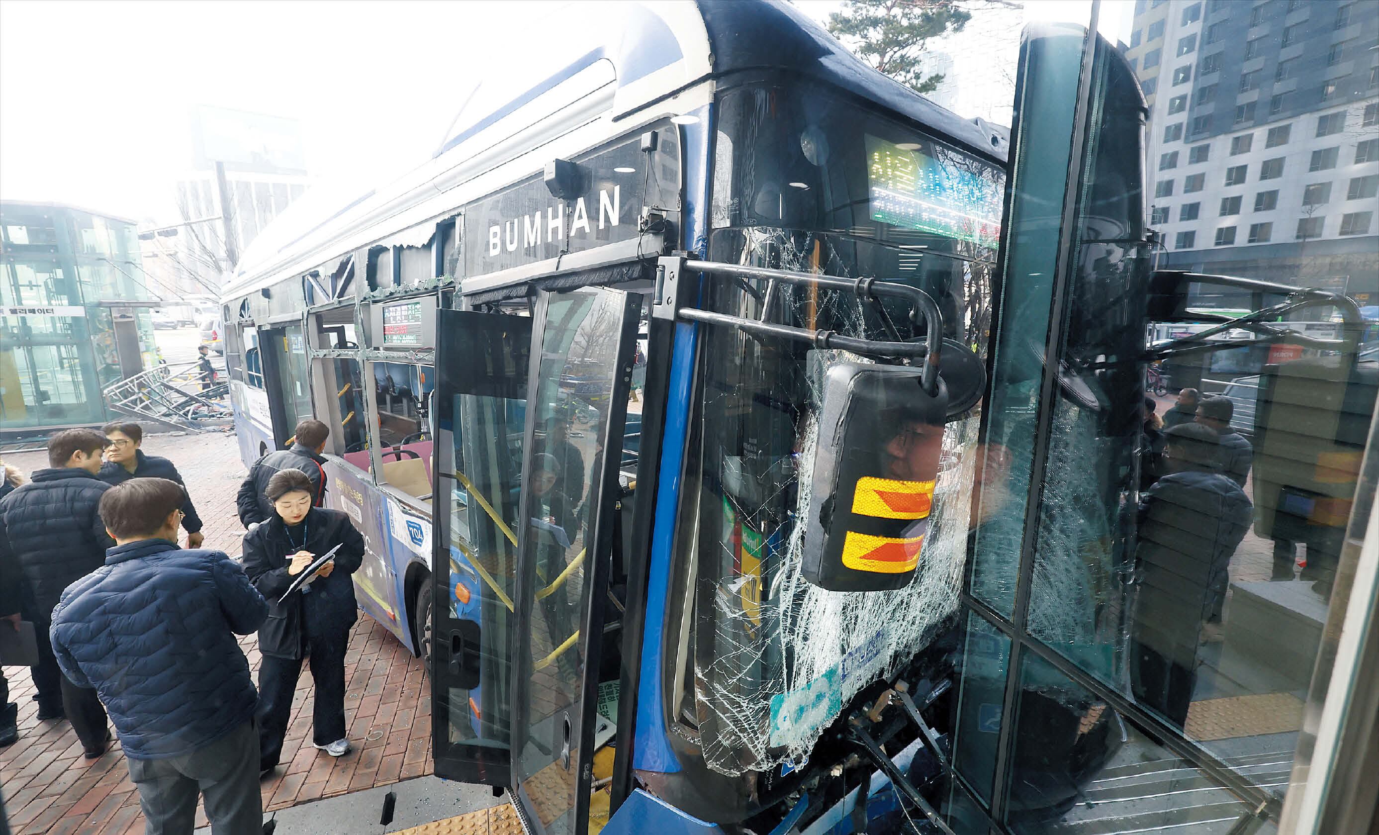 목격자들은 “버스가 서대문 사거리에 진입할 때부터 이상 주행을 했다”고 했다. 버스 전용 차로를 달리던 중 왼쪽 중앙 분리대(가드레일)와 수차례 부딪쳤다는 것이다. 인근에서 주행하다 사고를 목격한 한 버스 기사는 “충돌 직전까지 시속 50~60㎞쯤으로 달리는 것처럼 보였다”고 했다.