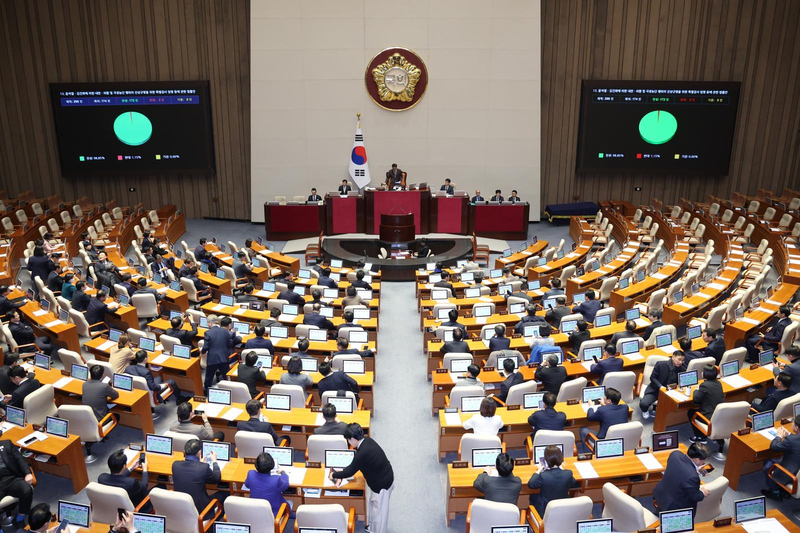 국회는 이날 본회의를 열어 2차 종합 특검법을 찬성 172명, 반대 2명으로 통과시켰다. 개혁신당 천하람 원내대표가 전날 오후부터 18시간 56분간 필리버스터(무제한 토론)를 진행하는 등 보수 야당은 필리버스터로 맞섰지만 민주당 등 범여권은 24시간이 지난 뒤 필리버스터를 강제 종결시킨 뒤 특검법을 처리했다. 국민의힘은 표결에 불참했다.