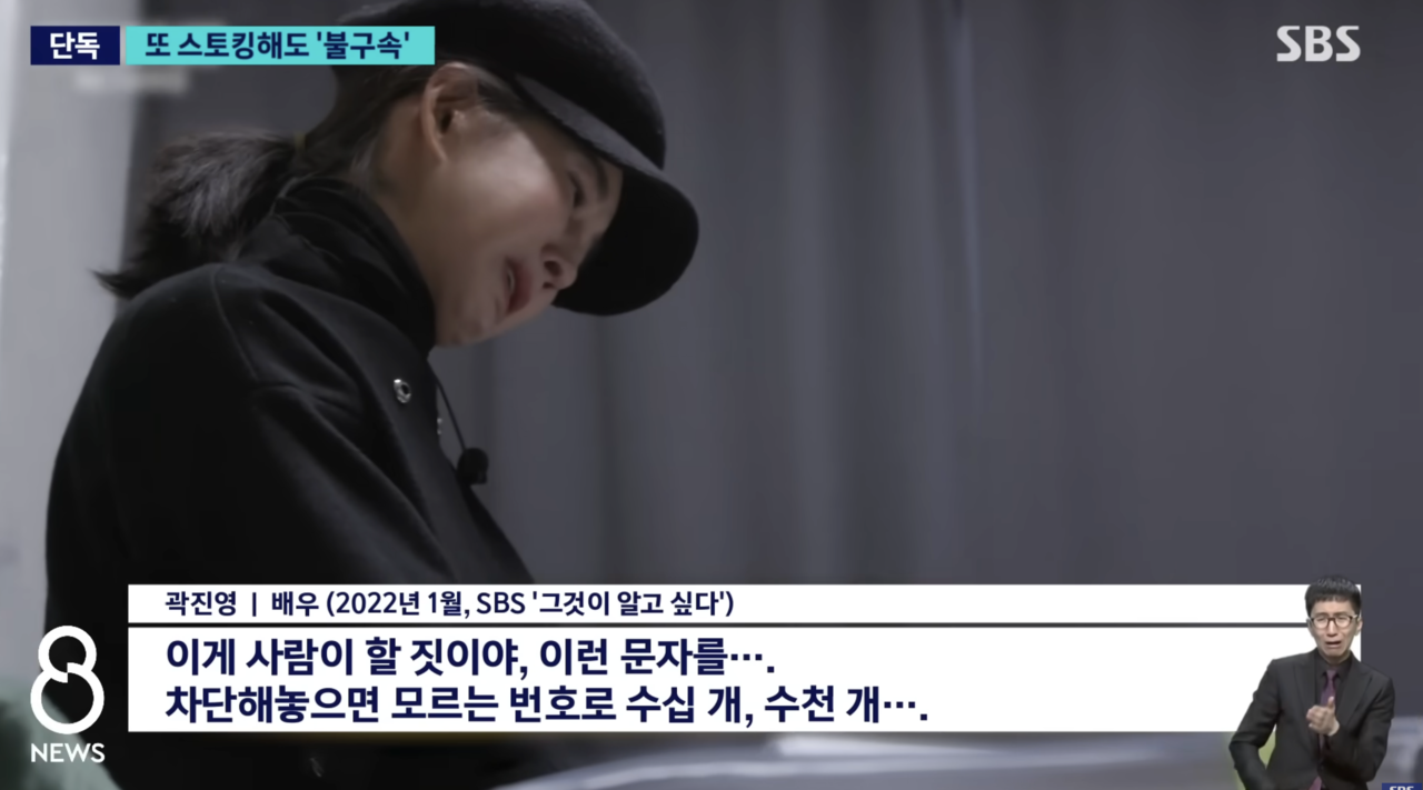 스토킹 피해 폭로하는 배우 곽진영. [유튜브 채널 SBS 캡처] |