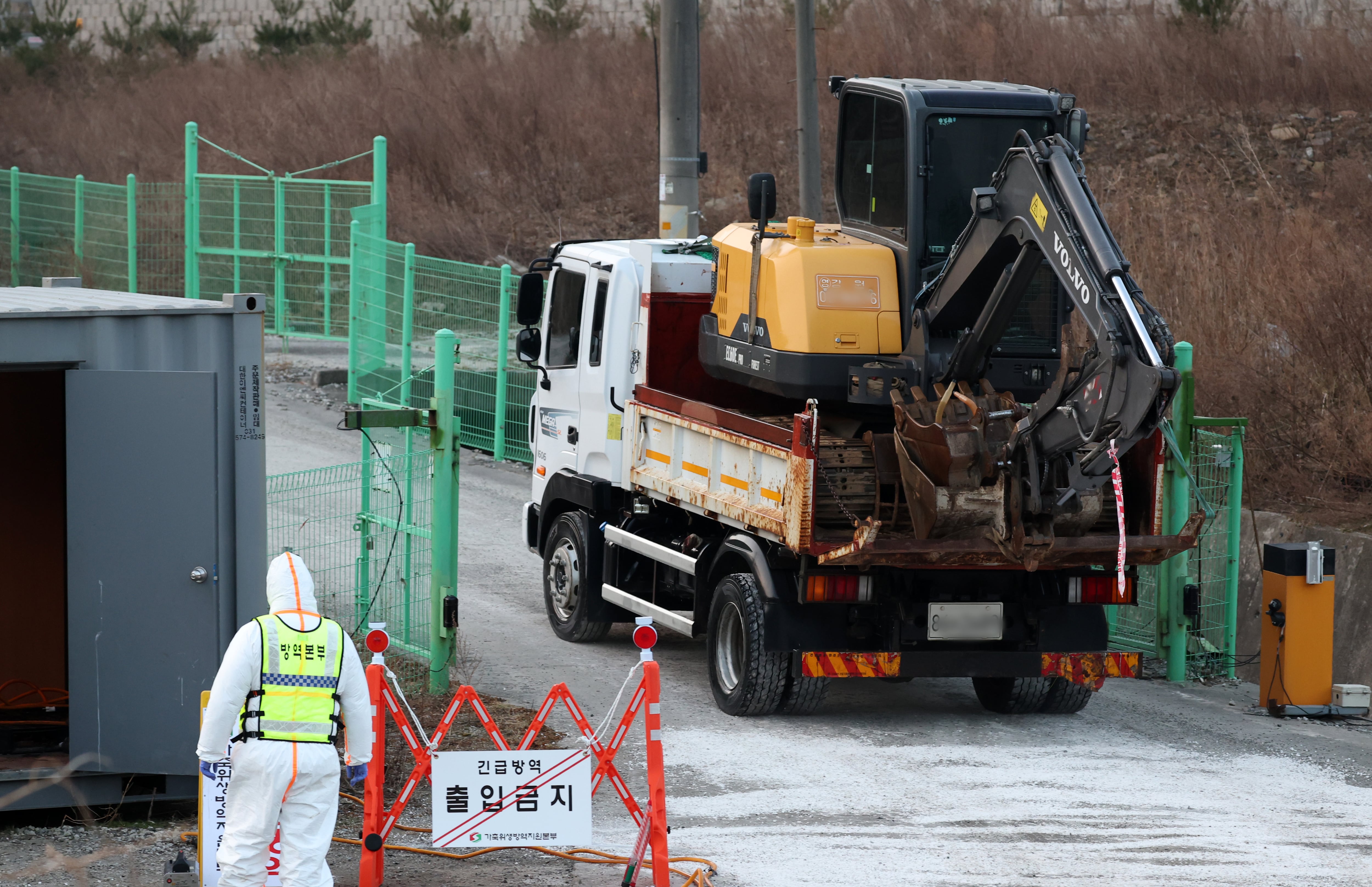 17일 아프리카돼지열병(ASF) 발생이 확인된 강원 강릉시 한 양돈농가에서 살처분 작업 굴착기가 이동하고 있다./연합뉴스 |