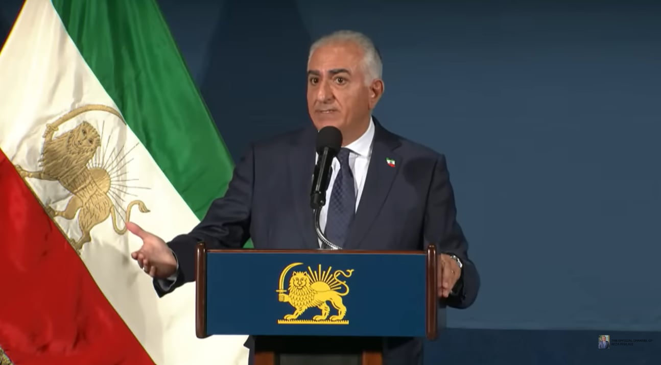 이란의 마지막 왕세자인 레자 팔레비가 16일 미 워싱턴DC에서 기자회견을 열고 있다. /레자 팔레비 공식 유튜브 채널 캡쳐 |