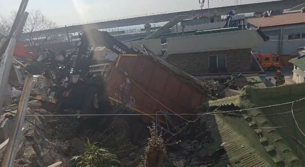 오늘(18일) 오전 11시 20분쯤 경남 김해시 불암동의 한 주택가에서 달리던 화물차가 도로 밖으로 추락해 주택을 덮쳤습니다.
