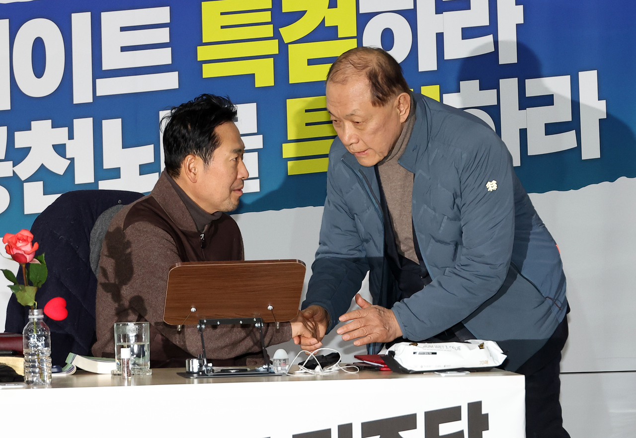 당 혁신위원장을 지낸 윤희숙 전 의원도 농성장을 찾아 장 대표와 악수를 하고 격려했다. 농성장 인근에는 당원들이 응원 문구를 적어 보낸 꽃바구니와 화환이 수십 개가 쌓여 있다.