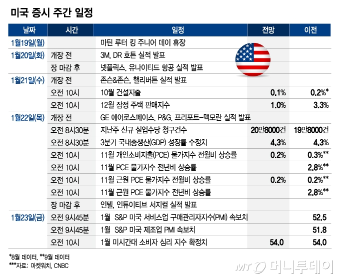 미국 증시 주간 일정_0118/그래픽=최헌정 |