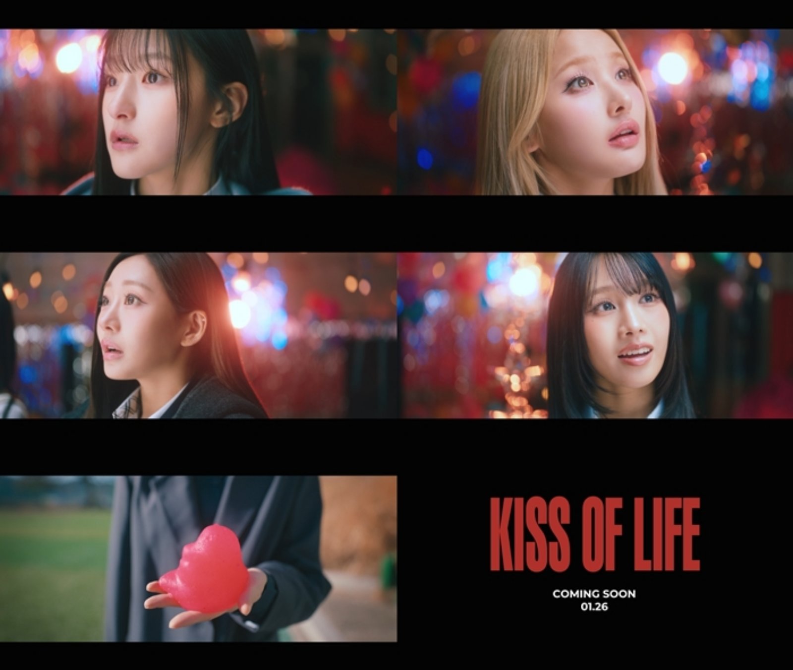 KISS OF LIFE(키스오브라이프)는 앞서 공개한 커밍순 영상에서도 데뷔 앨범을 연상시키는 감각적인 영상미와 타이포그래피로 국내외 팬들의 관심을 집중시켰다. 독창적인 음악성과 개성 넘치는 퍼포먼스로 입지를 다진 이들이 신보를 통해 보여줄 새로운 매력에 귀추가 주목된다.