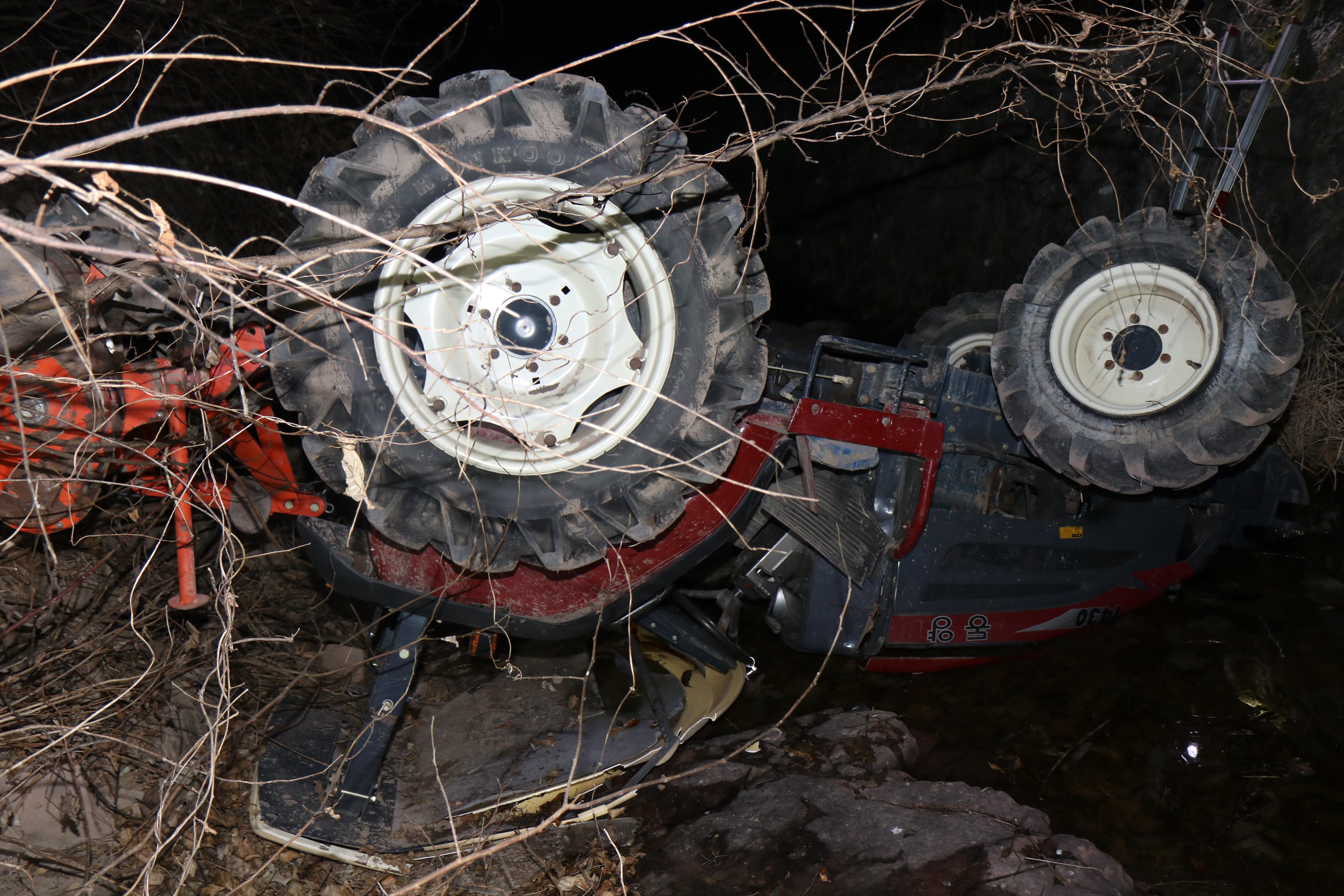 어제(18일) 저녁 8시 15분쯤 경남 의령군 가례면의 한 농로에서 트랙터가 2m 아래 하천으로 추락했습니다.