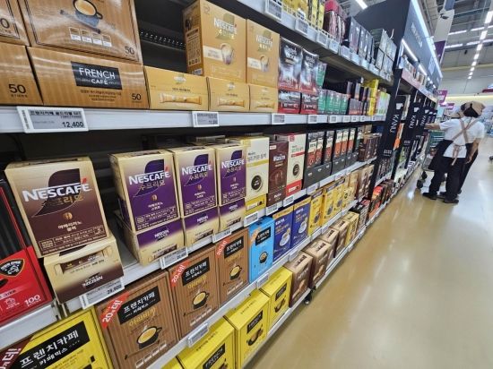계임사태 이후 기업들이 커피, 빵, 냉동식품, 라면 등 가공식품 53개 품목에 대해 가격을 인상하면서 '밥상물가'가 비상이다. 그동안 기업이 정부의 물가 안정 대책에 협조하는 차원에서 가격 인상을 자제해오다 국정 공백기에 제품 가격을 무더기로 올렸다는 분석이 많다.사진은 10일 서울의 한 대형마트 커피판매대 모습. 2025.06.10 |