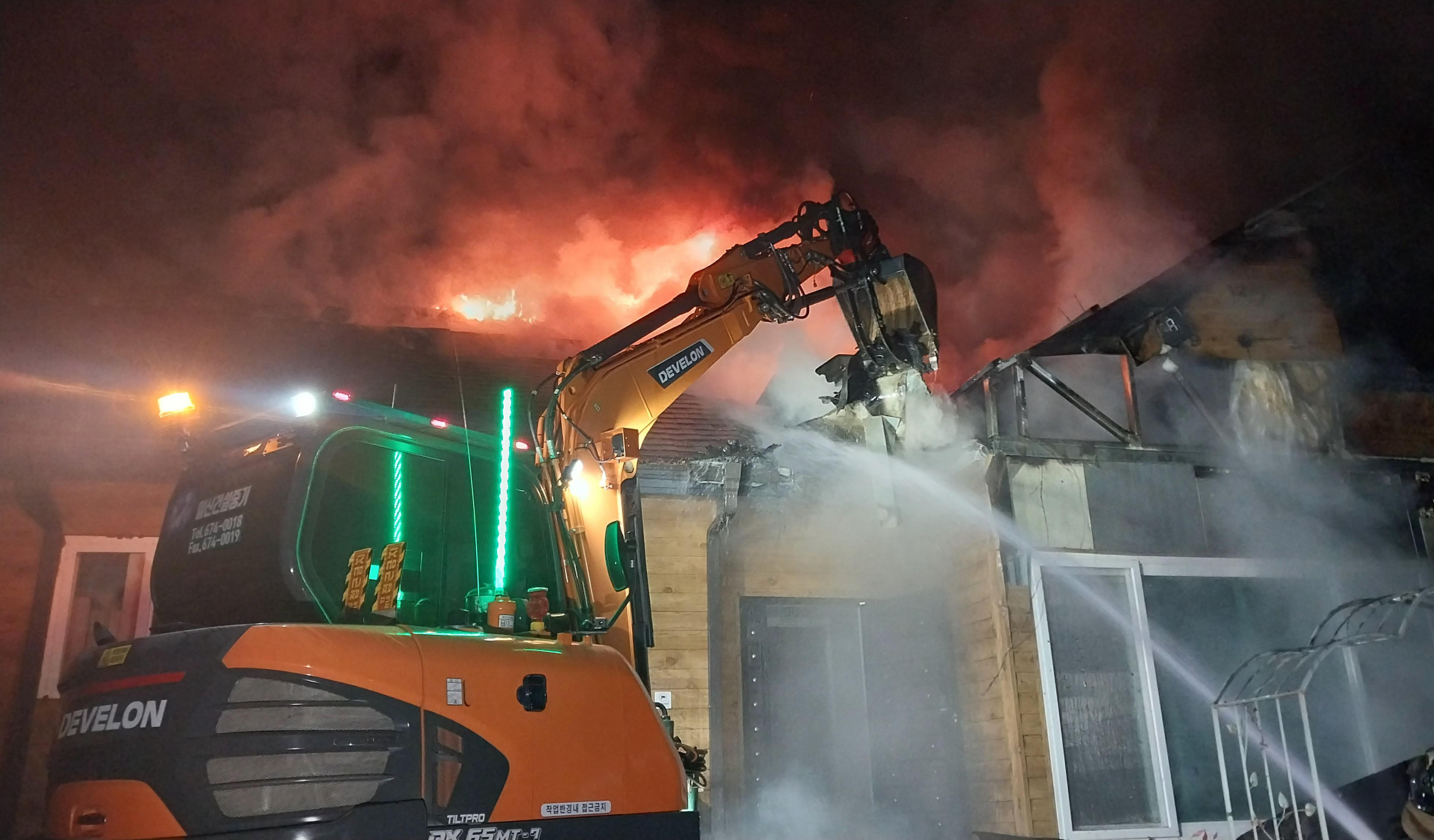 경찰과 소방당국은 화목보일러에서 발생한 불티가 샌드위치 패널에 옮겨붙으면서 화재가 발생한 것으로 추정하고 정확한 원인을 조사하고 있습니다.