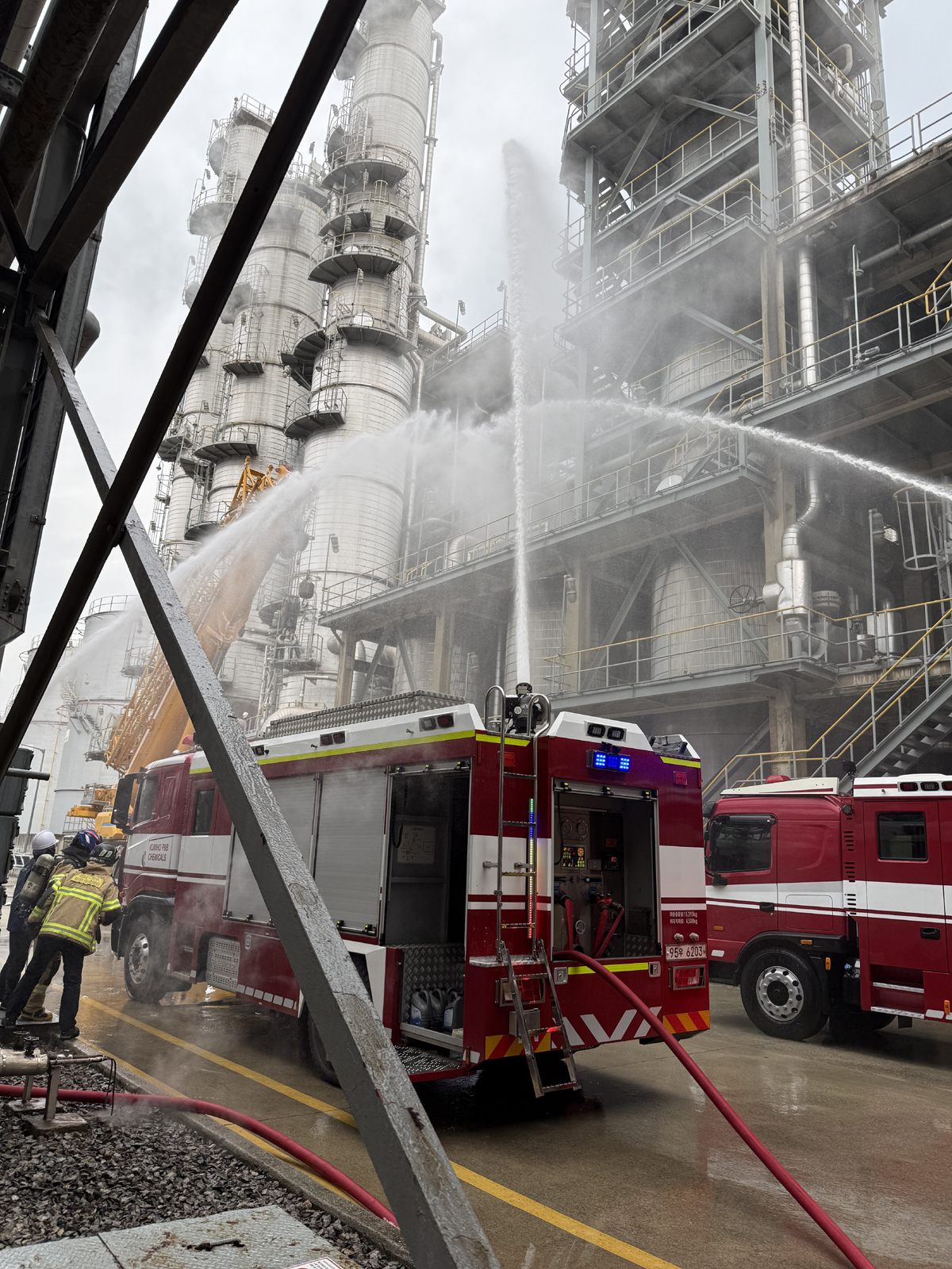 19일 오후 2시9분쯤 전남 여수시 화치동 국가산업단지에 위치한 한 화학공장에서 원인이 밝혀지지 않은 화재가 발생했다. 불은 출동한 소방당국에 의해 약 18분 만인 오후 2시27분쯤 진화됐다. 전남소방본부 제공 |
