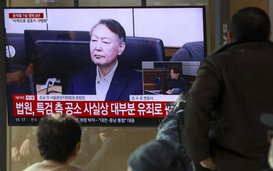 재판부가 윤석열 전 대통령에게 체포 방해와 국무위원 심의권 침해 등 혐의에 대해 1심 징역 5년을 선고한 16일 서울역 대합실에서 시민들이 재판을 보고 있다. 2026.1.16 강진형 기자 |