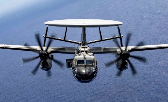 일본 항공자위대가 운용 중인 E-2D 조기경보통제기. 정비 장비 납기 지연으로 일부 기지에서는 전력 유지에 차질이 발생한 것으로 감사원 조사에서 확인됐다. (자료사진) |