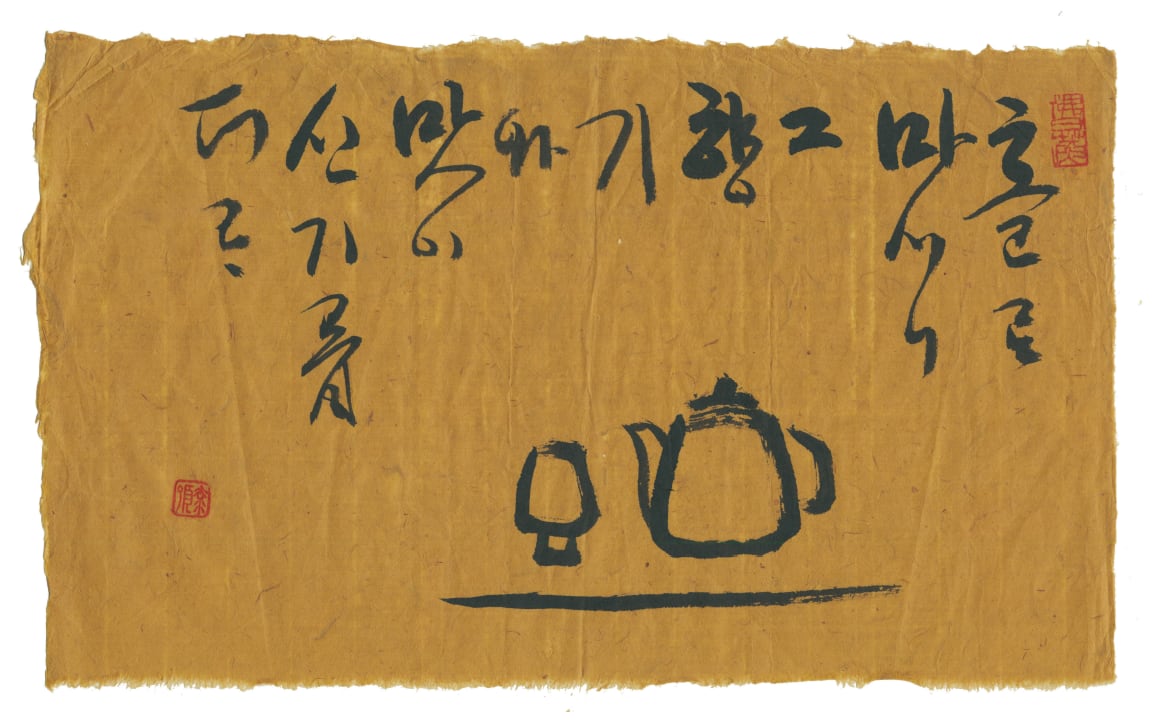 한글을 세로로 써 내려간 아래엔 찻주전자와 찻잔이 그려져 있다. 법정 스님이 갑자년(1984) 하지에 쓴 글이다. 여름을 앞둔 송광사 불일암의 한적한 풍경이 생생하다.