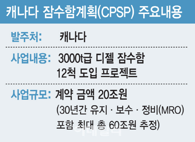 캐나다 잠수함사업은 3000톤(t)급 디젤 잠수함 12척을 도입하는 프로젝트다. 현재 한화오션·HD현대중공업 컨소시엄과 독일 티센크루프마린시스템(TKMS)이 최종 경쟁을 펼치고 있다. 캐나다는 오는 3월 최종 제안서를 제출 받은 뒤 올해 상반기 중 우선협상대상자를 선정할 예정이다.