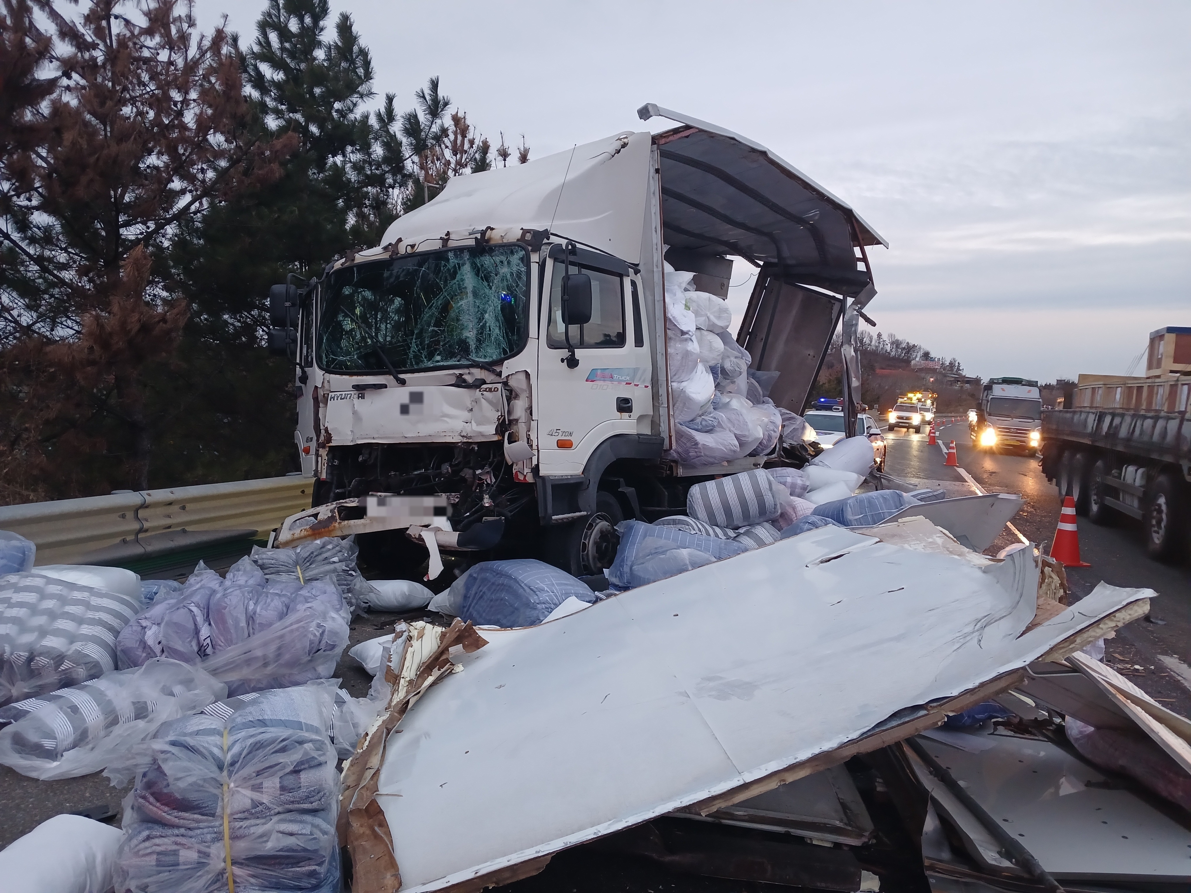 오늘(20일) 오전 6시 25분쯤 경남 창녕군 중부내륙고속도로 창원 방향 창녕IC 부근에서 화물차 3대가 잇따라 추돌하는 사고가 발생했습니다.