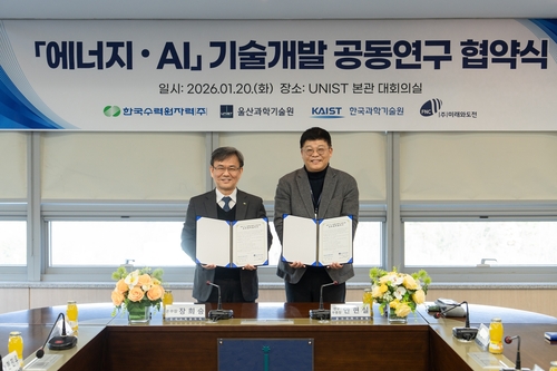 (울산=연합뉴스) 김용태 기자 = 울산과학기술원(UNIST)과 한국수력원자력이 손을 잡고 에너지·원자력 분야 인공지능(AI) 기술 개발에 나선다.