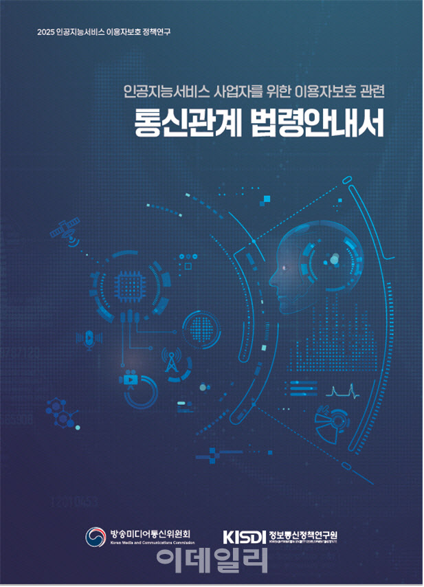 인공지능 서비스 사업자를 위한 이용자보호 관련 통신관계 법령안내서 표지(사진=방미통위) |
