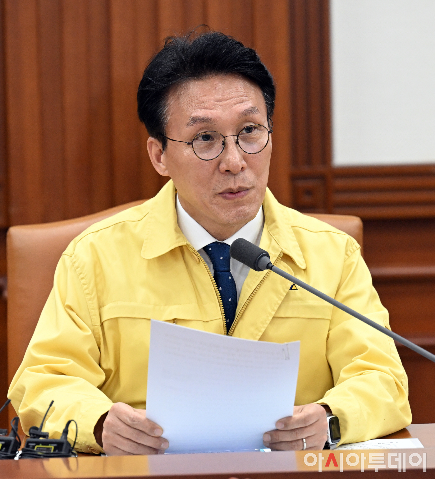 아시아투데이 박성일 기자 = 김민석 국무총리가 20일 오후 서울 종로구 정부서울청사 영상회의실에서 열린 국가테러대책위원회에 참석해 발언하고 있다.