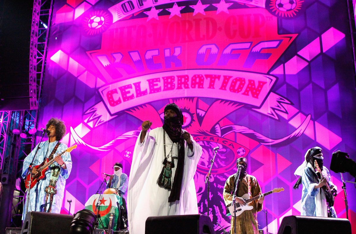 아프리카 록밴드 티나리웬이 2010년 6월10일(현지시간) 남아프리카공화국 요하네스버그 올랜도 스타디움에서 열린 2010 국제축구연맹 월드컵 개막 기념 콘서트에서 공연하고 있다. Gettyimages/이매진스 |