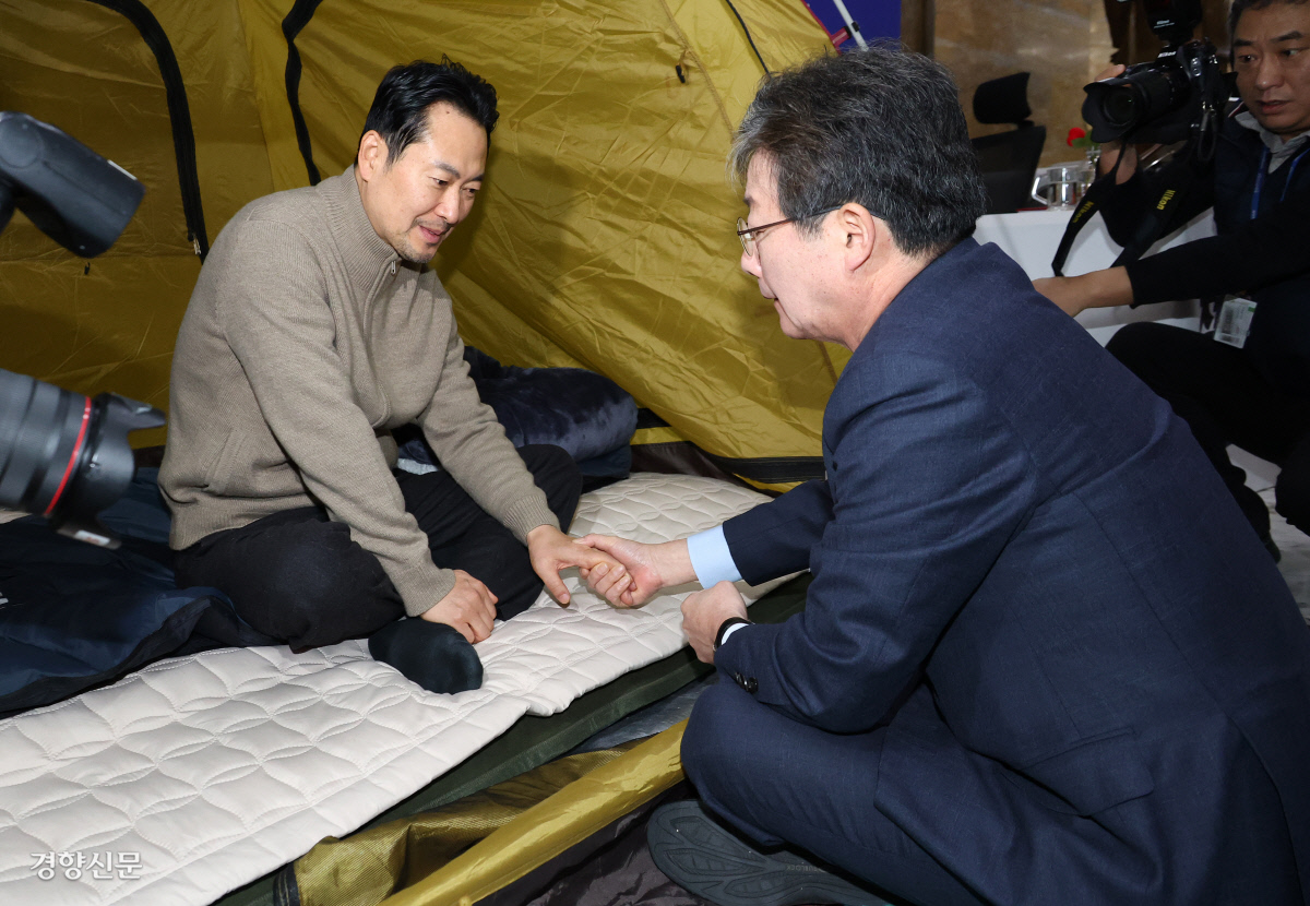 현역 지방자치단체장들을 비롯해 지방선거 출마 희망자들의 방문 행렬도 이어졌다. 지난 18일 오세훈 서울시장과 이철우 경북지사 등이 농성장을 방문한 데 이어 박형준 부산시장, 박완수 경남지사, 김태흠 충남지사, 김영환 충북지사 등이 전날 농성장을 찾았다.