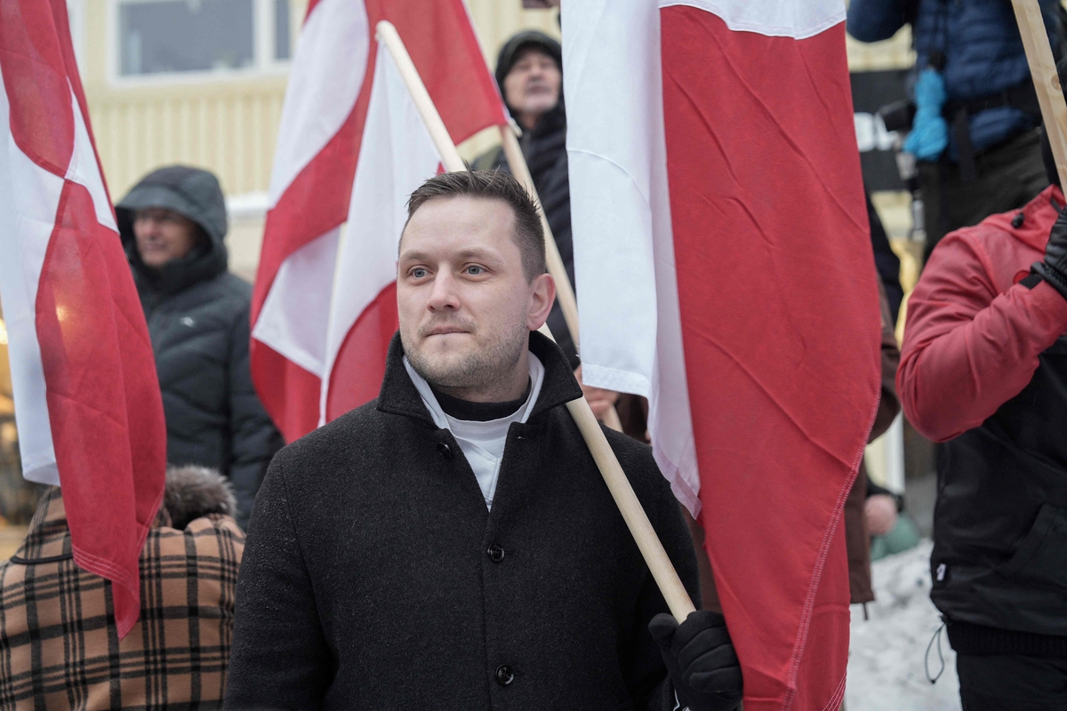 옌스 프레데리크 닐센 총리가 지난 17일(현지시간) 그린란드 수도 누크에서 미국의 그린란드 병합 구상에 항의하는 시위에 참석해 그린란드 국기를 들고 있다. AFP연합뉴스 |