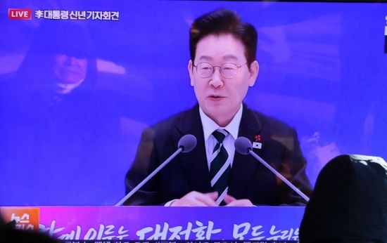 21일 서울 용산구 서울역 대합실에서 시민들이 이재명 대통령 신년 기자회견 방송을 지켜보고 있다. 2026.01.21 윤동주 기자 |