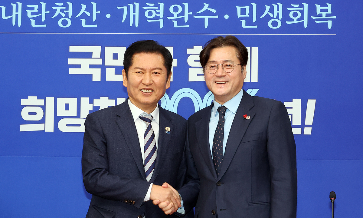 홍 정무수석은 정 대표에게 “친정집에 온 것 같다”고 화답했다. 홍 정무수석은 “이재명정부가 인수위원회 없이 내란과 탄핵이란 국가적 비상사태 속에서 집권한 정부라 국회와 특히 집권여당의 안정적 운영, 뒷받침이 매우 절실했던 시기였다”며 “든든하게 당을 일사분란하게 이끌면서 이재명정부 국정운영과 개혁 과제 추진을 뒷받침해준 데 감사하다”고 사의를 표했다. 홍 정무수석은 “현재부터 대략 1년 반 정도 기간이 이재명정부로서는 가장 활발하게 일할 수 있는 시기”라며 “그 과정에서 가장 든든한 정치적 파트너자 당대표 역할을 정 대표가 해주고 있다”고 말했다.