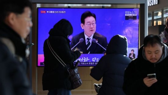 21일 서울 용산구 서울역 대합실에서 시민들이 이재명 대통령 신년 기자회견 방송을 지켜보고 있다. 2026.01.21 윤동주 기자 |