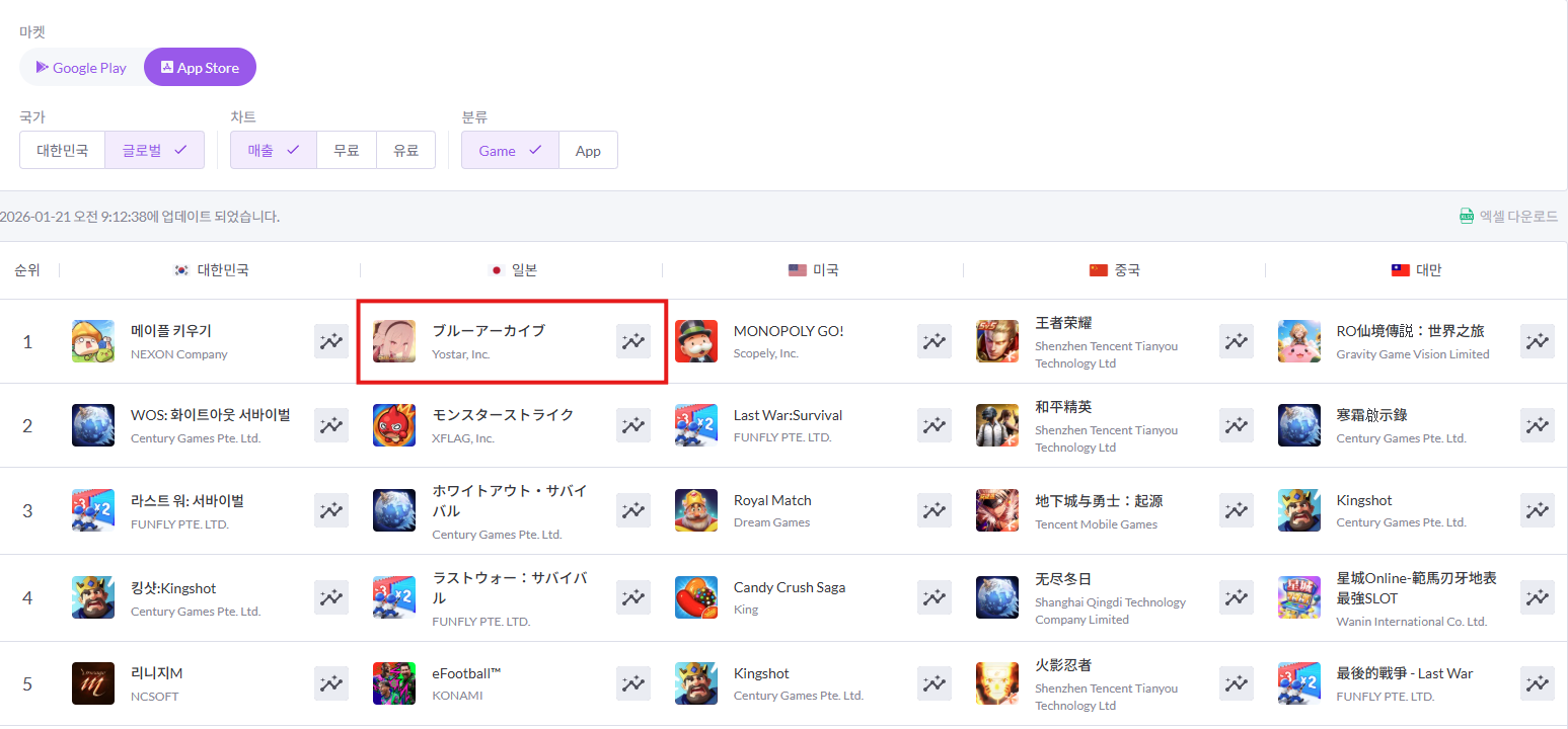 서브컬처 장르 게임 가운데, 초반 흥행을 넘어 장기적인 서비스 안정화와 팬덤 확장에 성공하는 신생 IP는 극히 드물다. 특히 일본 내 자국 IP의 경쟁력이 강한 시장 환경에서, 해외 개발사가 현지 이용자층을 대상으로 장기 흥행 기반을 구축한 사례는 많지 않다. 경쟁이 치열한 일본 시장에서 ‘블루 아카이브’는 한국의 신규 IP로서 이례적인 성과를 만들어냈다.