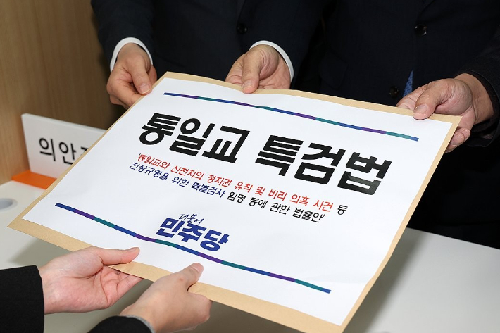 한 민주당 의원은 "특검을 별도로 도입하면 통일교 특검만 진행되고, 신천지 특검은 국민의힘의 공격을 받아 잘 못 굴러갈 수도 있다"며 "반대로 신천지 특검이 조금이라도 성과를 내면 정부·여당이 신천지 특검에 힘을 몰아주는 거 아니냐는 비판도 나올 수 있다. 따라서 하나의 특검에서 수사를 해야 한다"고 설명했다.